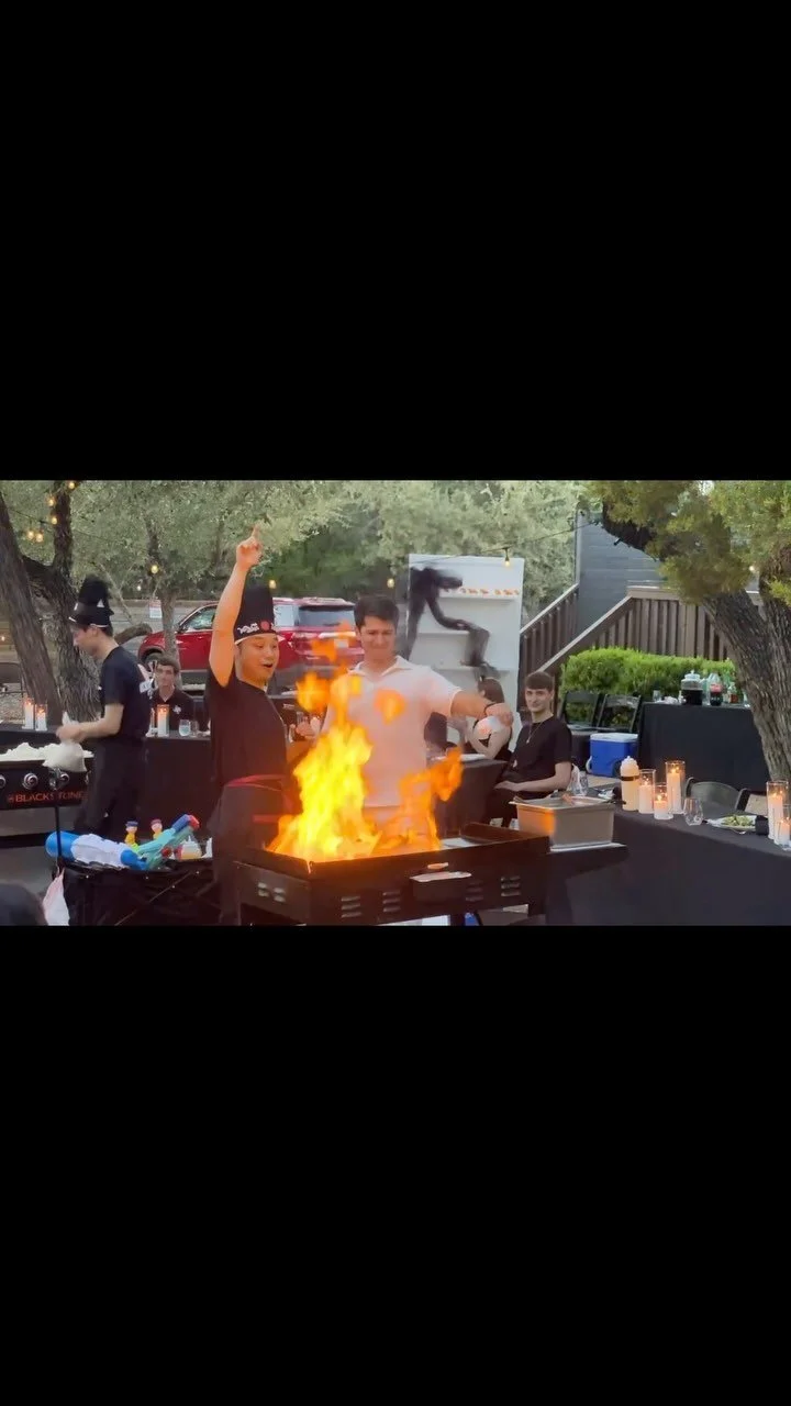 We bring the grill, ingredients, and chef—you just provide the tables, chairs, plates, and utensils.